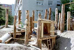 Strahlenförmige Pfostenreihen animieren zum Bauen und klettern
